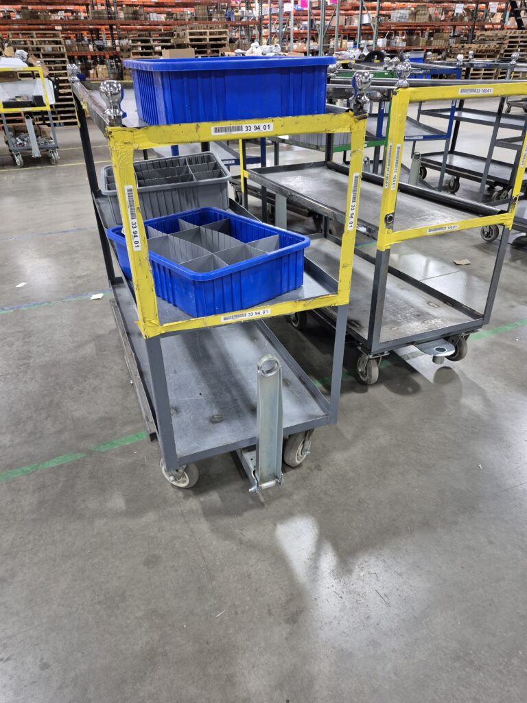 Instead of pushing heavy carts across long distances, teammates could now tow them – dramatically reducing daily physical stress. Our in-house engineering team modified existing pick carts by adding tow bars, ensuring they could be safely pulled behind the stock chasers.